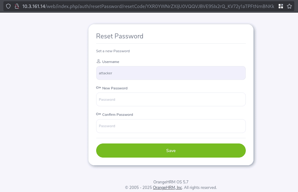 usd-2025-46 | OrangeHRM OS 5.7 - Authenticated Account Takeover via Insecure Password Reset