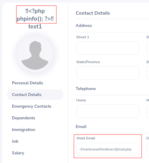 Version 5.7 of OrangeHRM allows authenticated attackers OS command injection via mail configuration.
